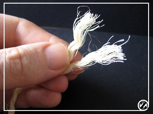 Separamos las dos trenzas de cuerda y cortamos, de una de ellas, un trozo de no más de 3 o 4 cm.